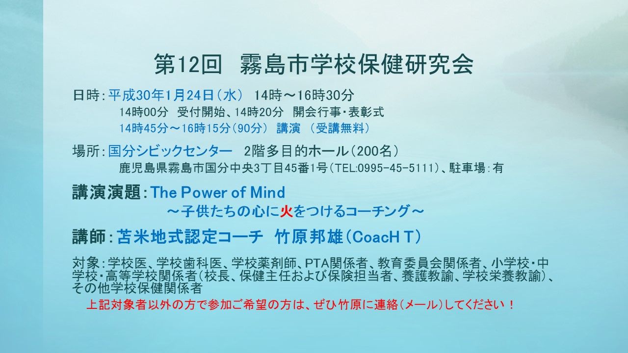 霧島市(鹿児島県)で開催したコーチングをテーマとした研修会に、たくさんの保健師・看護師さんに御参加いただきました。御意見や御質問の一部に回答いたします。個人が特定されそうなもの等は除いていますので御了承ください。