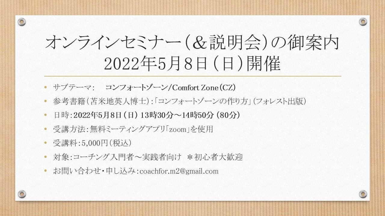 申し込み(メール):coachfor.m2@gmail.com