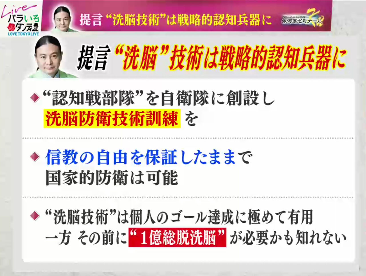 今、いきなり“洗脳”という言葉がでてきてびっくりしているのでは?w