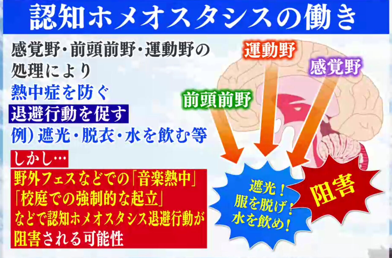 4)「苫米地理論の3つのパラダイム」を意識に上げて、「生体ホメオスタシス」と「認知ホメオスタシス」を五感で感じながら、再度環境省の熱中症予防サイトにある「熱中症」の3つの要因(環境・からだ・行動)を確認してください。