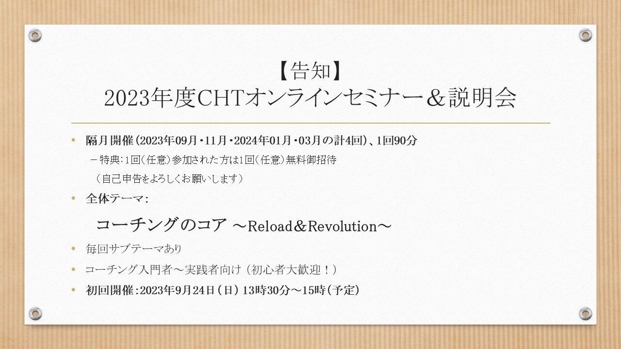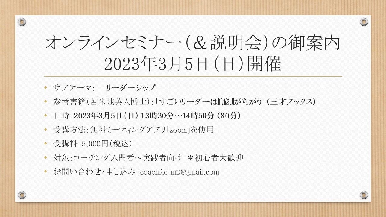 I-124:【告知】オンラインセミナー(&説明会)<240428>「コーチングのコア×why?」開催の御案内