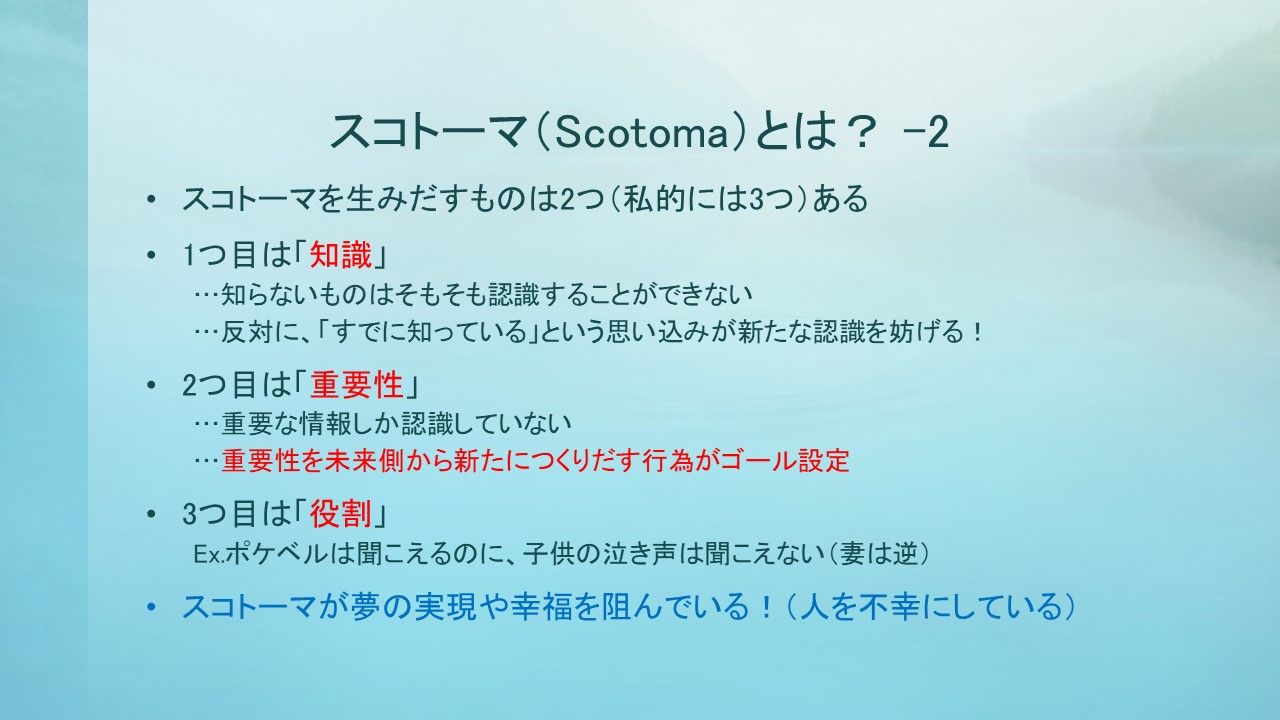 楽しそうに(恥ずかしそうに?)帰っていく職員さんを見送りながら、私は目の前の世界がスコトーマだらけであることをあらためて実感しました。